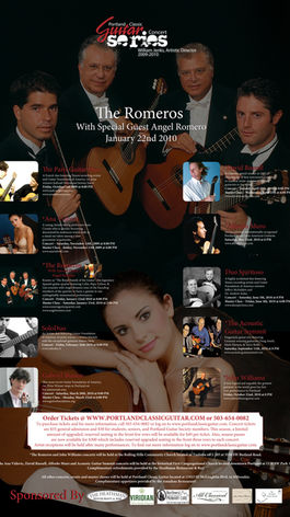 Browse through almost 500 of our photos from over 200 concerts spanning over the last 20 years with many of the greatest guitarists in the world such as John Williams, the Romeros, David Russell, Manuel Barrueco, Ana Vidovic and many more.